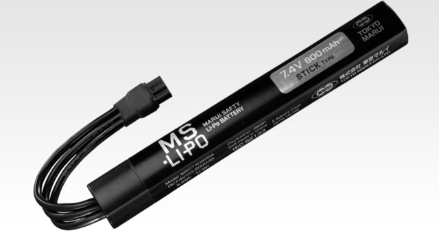 【主な特徴】 スリムなLi-Poバッテリー 寒さに強く自然放電が少ない、7.4V 800AhのLi-Poバッテリーです。従来のニッケル水素AKバッテリーと比べて、スリムでコンパクト。さらに出力が高いため、トリガーを引いてからBB弾を発射するまでのレスポンスが向上します。 【5つの保護機能を搭載(バッテリー)】 バッテリー内に、過充電や過放電、ショートなどのトラブルからバッテリーとユーザーを守る保護機能を搭載。【1】過放電防止機能【2】過充電防止機能【3】放電過電流保護機能【4】短絡(ショート)保護機能【5】0V(ゼロボルト)充電禁止機能 【温度センサー搭載(バッテリー)】 バッテリーに温度センサーを内蔵することで、接続したMS•Li-Poバッテリー対応の充電器や電動ガンが、バッテリー温度を検知。温度に異常がみられたり作動範囲外だった場合に動作を停止します。 【MS•Li-Poバッテリー専用充電器】 東京マルイ『MS•Li-Poバッテリー』専用(※)の充電器です。バッテリーに搭載されている保護機能や温度センサーと、本製品に搭載した様々な保護機能によって、より安全なリポバッテリーの充電、使用、保管が可能となります。※東京マルイ純正リポバッテリー以外には使用できません。 【様々な保護機能を搭載(チャージャー)】 6つの保護機能により、バッテリーの温度や充電電流、充電電圧などを管理し、発熱などのトラブルを未然に防ぎます。【1】電池温度 異常検知【2】電池電圧 異常検知【3】ACアダプター入力電圧 異常検知【4】充放電 保護タイマー【5】充電電流 異常検知【6】電池温度 警告表示 【ストレージモード搭載(チャージャー)】 バッテリーを保管に適した電圧に調整する、ストレージモードを搭載。「STOR」ボタンを押すと、バッテリーの状態をチェックし、保管に適した電圧になるまで自動で充電/放電を行います。 【LEDとブザーで状態をお知らせ(チャージャー)】 待機中や充電/ストレージモードの状況が、インジケーターの点灯/点滅、ビープ音で識別可能。また、何かしらの異常を検出した場合には、インジケーターの点滅パターンやブザー音によって、どのような異常が起きているかをお知らせします。 【!】必ずMS•Li-Poバッテリー対応製品をご使用ください 万が一に備える耐火袋『MS•Li-Po セーフティバッグ』(別売)を必ずご用意ください。 基本情報 【MS•Li-Po バッテリー】 ■専用ICによる5つの保護機能搭載 ■温度センサー搭載(温度判定はエアソフトガンまたは充電器) ■内部回路によるセル管理(バランス充電不要※1) 【MS•Li-Po セーフティチャージャー】 ■各種異常状態に対応する6つの保護機能搭載 ■ストレージモード搭載 ■異常状態と充電完了を知らせるブザー機能搭載 ■静音性に優れたファンレス設計 重量 【バッテリー】約 85 g サイズ 【バッテリー】131 x 16.6 x 16.8 mm(コネクターとケーブルを除く)/【チャージャー】90.5 x 80 x 27.5 mm(ACアダプターを除く) ケーブル長【バッテリー】100 mm /【ACアダプター】50 mm その他バッテリー情報 2 セル(直列接続)/ 公称電圧 7.4 V / 使用可能電圧 6.0 V 〜 8.4 V / 公称容量 800 mAh / 保護機能:過放電防止機能、過充電防止機能、放電過電流保護機能、短絡(ショート)保護機能、0V(ゼロボルト)充電禁止機能 その他チャージャー情報 充電方式 CC-CV / 充電電圧 最大 8.38 V ± 5 mV / 充電電流 最大 1 A / 放電能力 0.5 A(ファンレス)/ 放電終了電圧 7.7 V(※1) ※1:ストレージモードの放電時は7.7V、充電時は7.6Vで終了。 パッケージ内容 バッテリー、チャージャー本体、ACアダプター、取扱い説明書×2 パッケージサイズ 横205x 縦157 x 厚35 mm